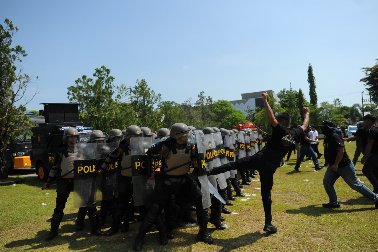 Dalam simulasi ini, personel secara profesional mempraktikkan berbagai taktik dan strategi, mulai dari penanganan aksi unjuk rasa, penyekatan jalan, hingga pengamanan objek vital sesuai skenario yang telah disusun.