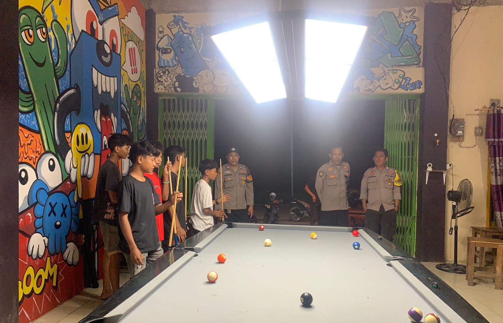 Setelah itu Patroli kembali dilanjutkan menuju tempat keramaian atau tempat berkumpulnya para remaja dan menyampaikan himbauan Kamtibmas.